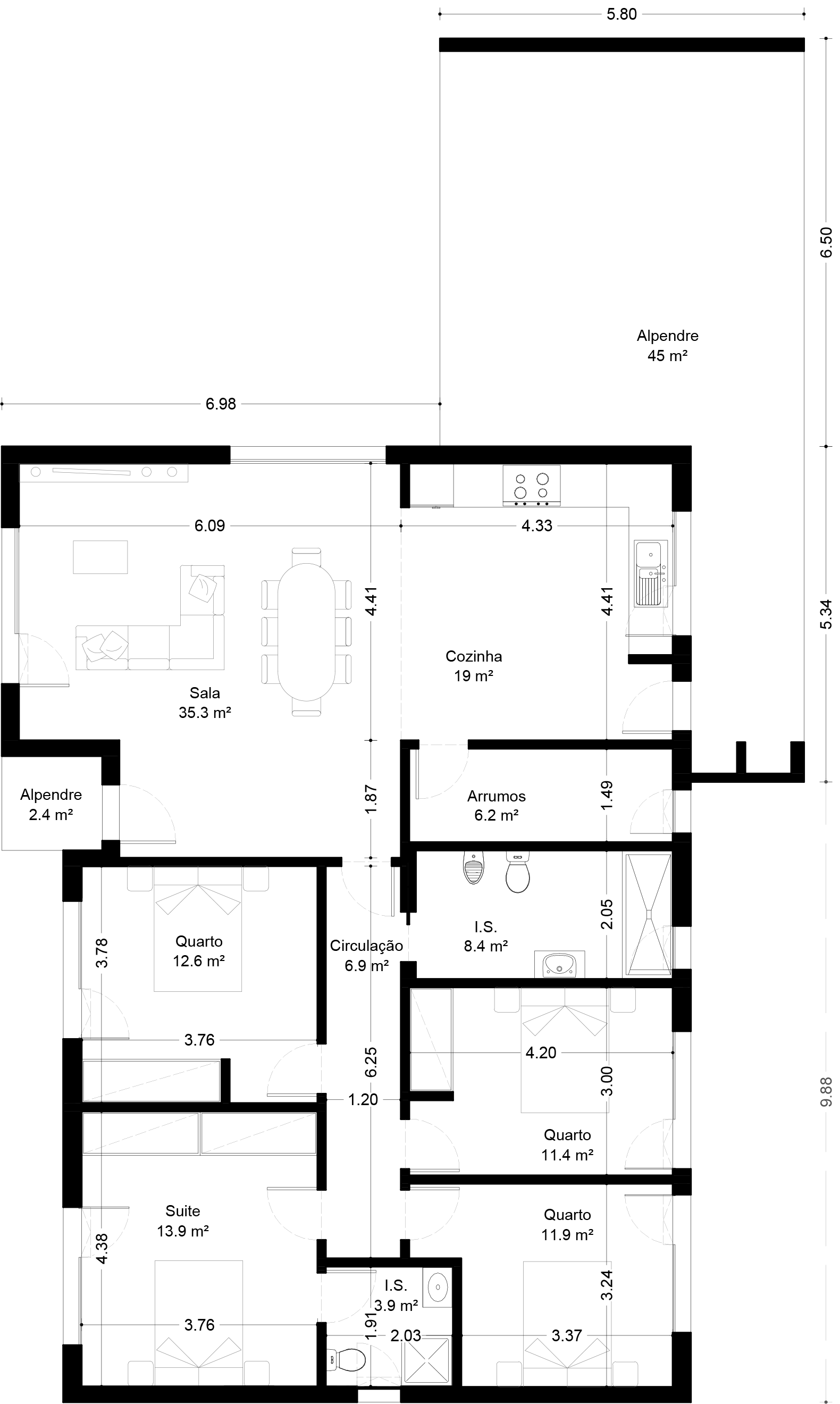 Área de construção – 205,9 m2