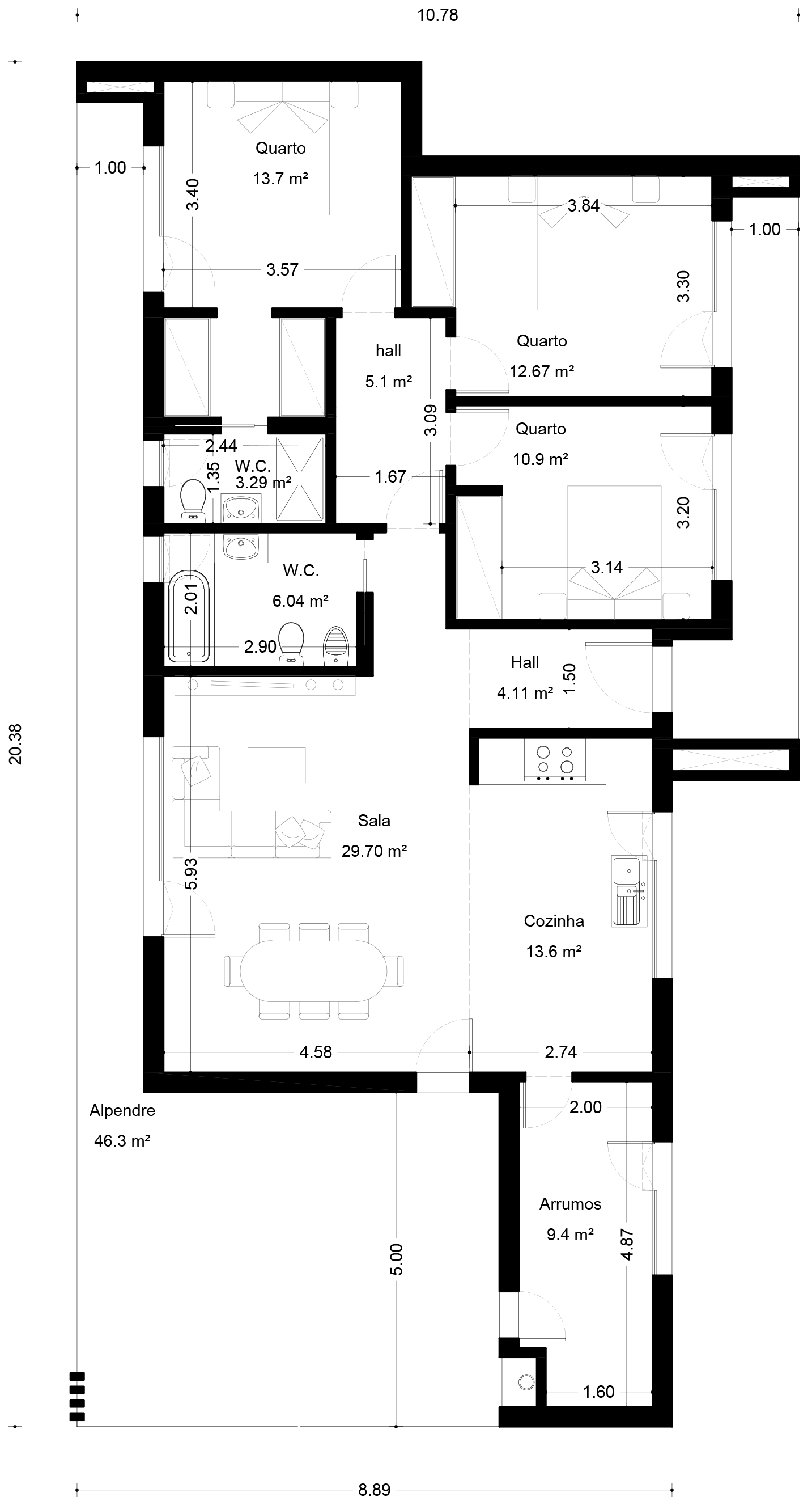 Área útil – 108 m2